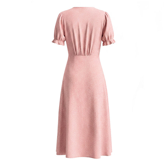 Women Clothing Spring Lace Polka Dot Short Sleeve Dress