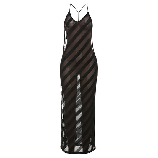 Women Clothing Spring Arrival Sexy Side Split Bare Back Slim Fit See through Dress