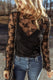 Black Lace Mesh Crochet Splicing Slim Fit Long Sleeve Blouse