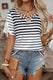 Black Stripe Cross Straps Hollowed Neck Lace Splicing Short Sleeve Blouse