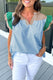 Mist Blue Colorblock Ruffled Sleeve Frill V Neck Blouse