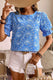 Sky Blue Eyelet Flower Embroidery Frilled Short Puff Sleeve Blouse