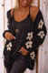 Black Floral Print Knitted Open Front Loose Cardigan