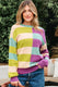• Green Stripe Drop Shoulder Ribbed Edge Casual Sweater