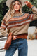 Khaki Aztec Print Colorblock Crew Neck Sweater