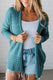 • Lapis Mix Pattern Hollowed Knit Open Front Cardigan