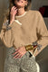 • Tan Leopard Bow Decor Split Cuff Contrast Trim Sweater