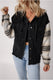Black Plaid Sleeve Frayed Hem Hooded Denim Jacket