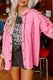 Bonbon Pearl Beaded Raw Hem Button Up Denim Jacket