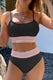 Black Striped Patchwork Spaghetti Strap High Waist Bikini Swimsuit