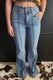 Dusk Blue 2 Button High Waist Piping Trim Bootcut Jeans