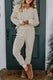 • White Polka Dot Print Notched Neck Long Sleeve Top Drawstring Jogger Pants Waffle Knit Lounge Set