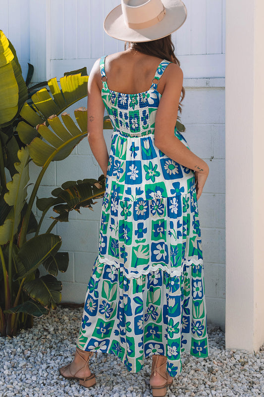 Multicolour Floral Maxi Sundress with Ricrac Trim