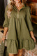 • Jungle Green Quarter Zip Collar Bracelet Sleeve Textured Mini Dress