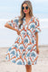 Orange Contrast Palm Tree Printed Short Sleeve Flowy Dress