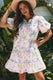 Pink Floral Striped Print Contrast Trim Tie Split Neck Mini Dress