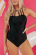 Black Sleeveless Strappy Halter Neck Sexy One Piece Swimsuit