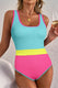 Iceland Blue Textured Color Block Patchwork One Piece Swimsuit