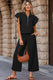 • Black Textured Ruffled Sleeve Zipped Top and Wide Leg Pants Set