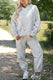 Light Grey Abstract Print Loose Drop Sleeve Hoodie Elastic Waistband 2pcs Pant Set