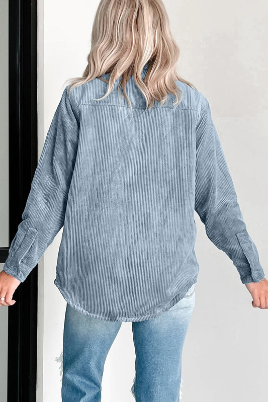 Stone Blue Plaid Corduroy Reversible Button Up Shacket