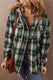 Green Plaid Print Chest Pocket Buttoned Hooded Shacket