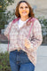 Bonbon Plaid Print Drawstring Hooded Button-up Plus Size Shirt