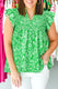Green Floral Flutter Sleeve Shirred Notched Neck Plus Size Blouse