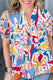 White Abstract Print Shirred Cuff Puff Sleeve Plus Size Blouse