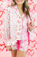 • Pink Mixed Floral Print Contrast Piping Trim Satin Tie 2pcs Pajama Set