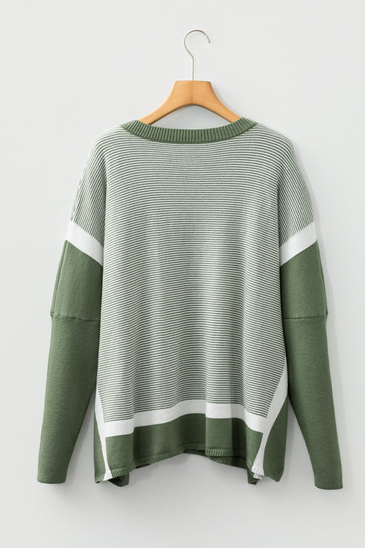 Green Stripe Color Block Patchwork Dolman Oversize Tunic Sweater