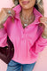 Bright Pink Half Button Stand Neck Drop Shoulder Sweatshirt
