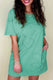 Mint Green Mineral Wash Flower Patchwork Mini T Shirt Dress