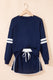 Navy Blue Varsity Stripe Detail Drop Shoulder Pullover Mini Skirt Set