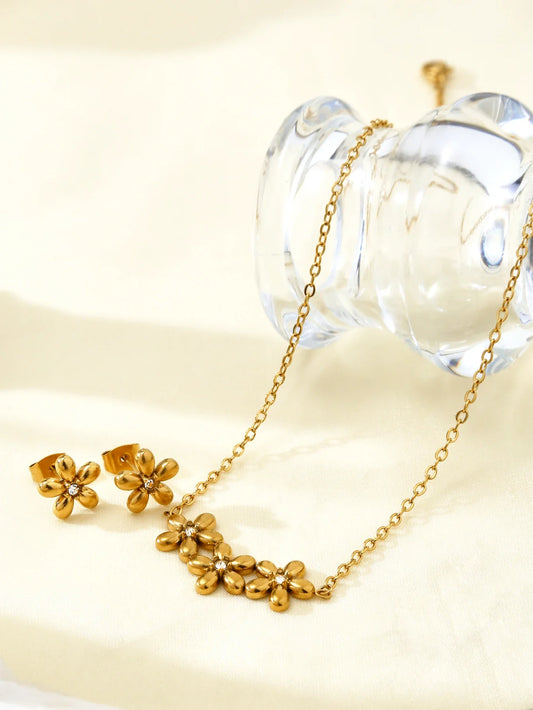 Romantic 18K Gold-Plated Stainless Steel Flower Jewelry Set