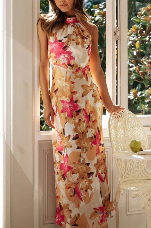 Floral Print Halter Neck Maxi Dress