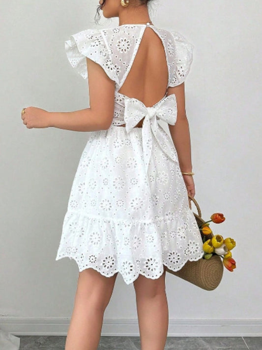 Eyelet Ruffle Sleeve Mini Dress