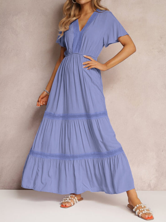 V-Neck Short Sleeve Tiered Maxi Dress