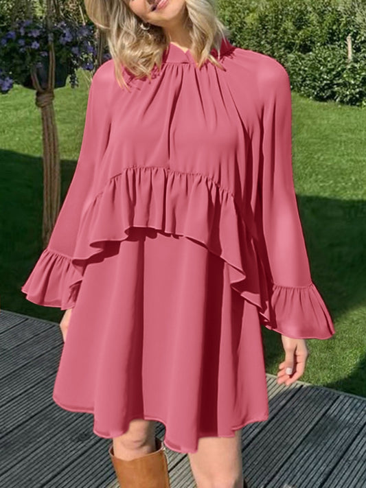 Ruffle Trim High Neck Mini Dress