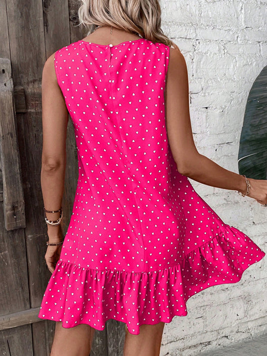 Heart Print Sleeveless Ruffle Hem Mini Dress