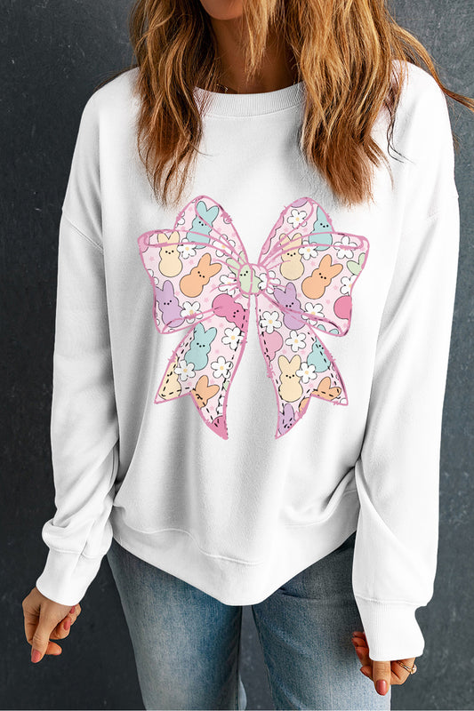 White Easter Bunny Bow Printed Casual Sweatshirt