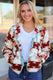 Fiery Red Western Aztec Buttoned Zipper Pockets Fleece Jacket