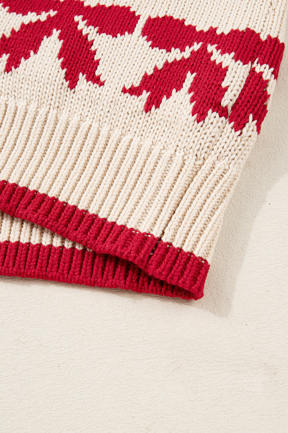 • The contrast bow pattern adds a feminine charm to this relaxed cardigan.