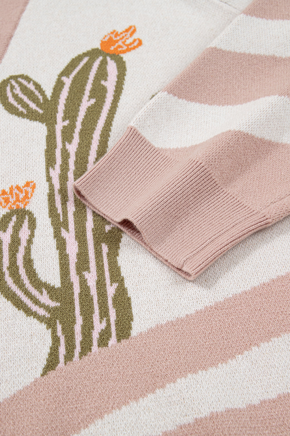 Apricot Western Desert Cactus Print Plus Size Button Cardigan Sweater