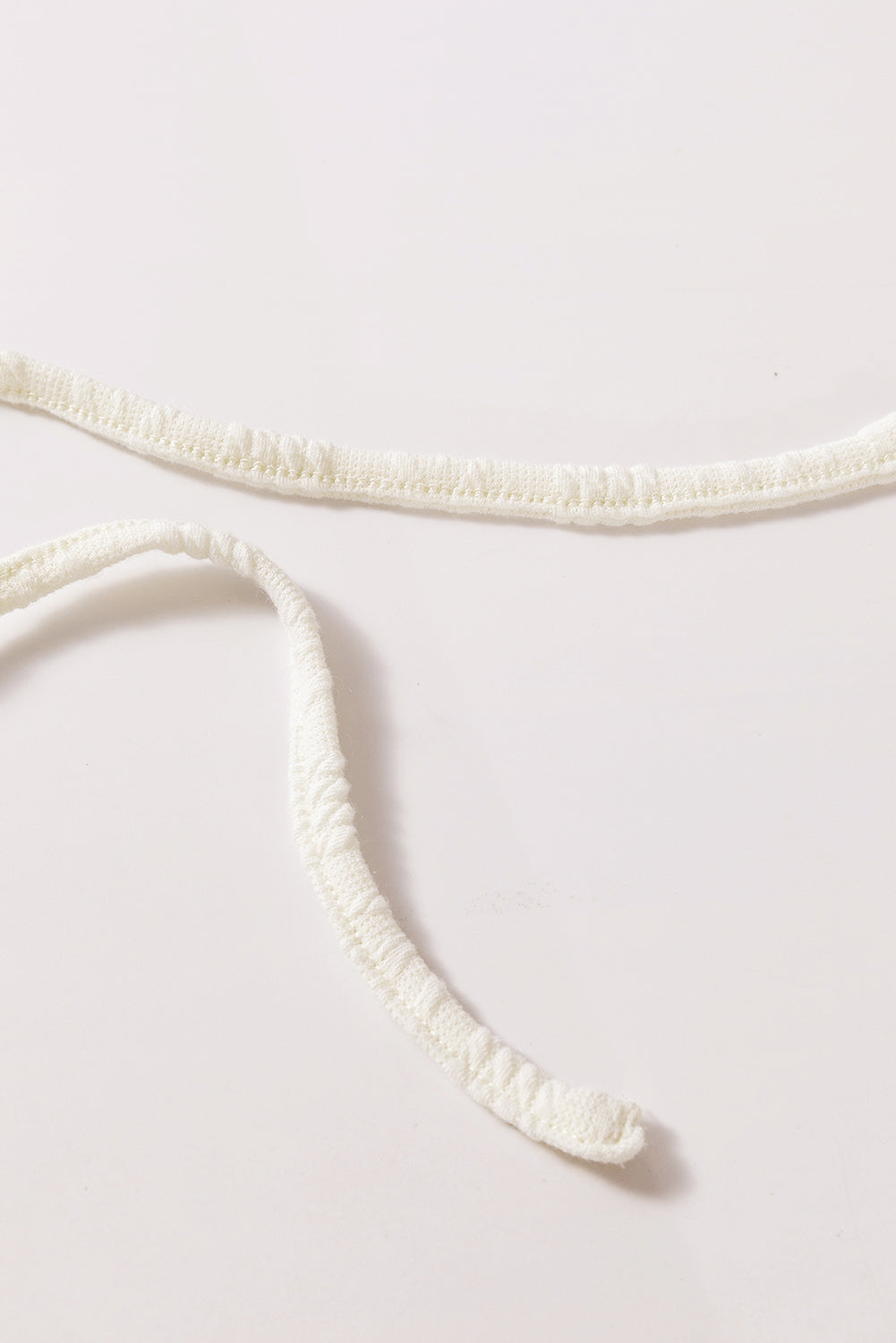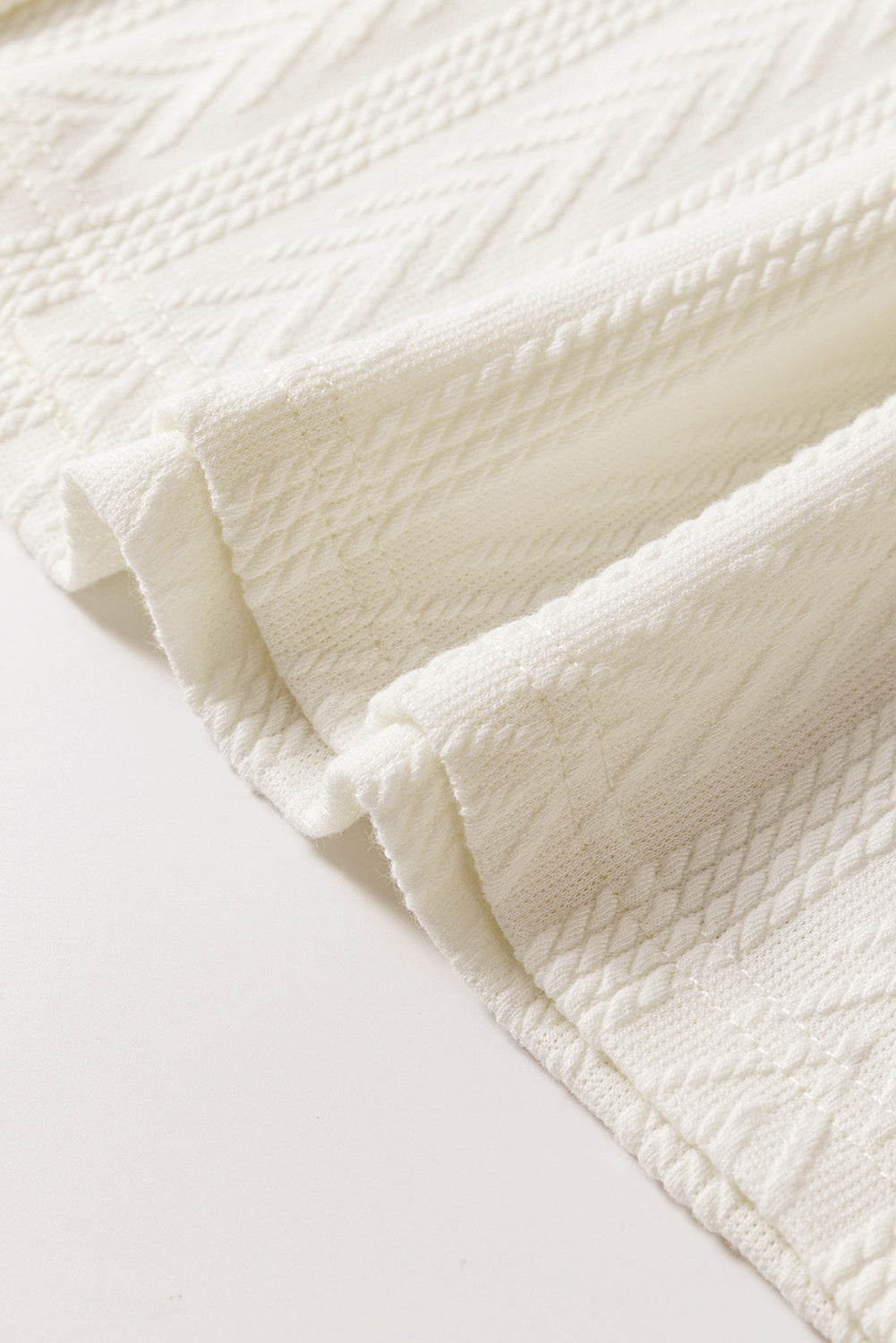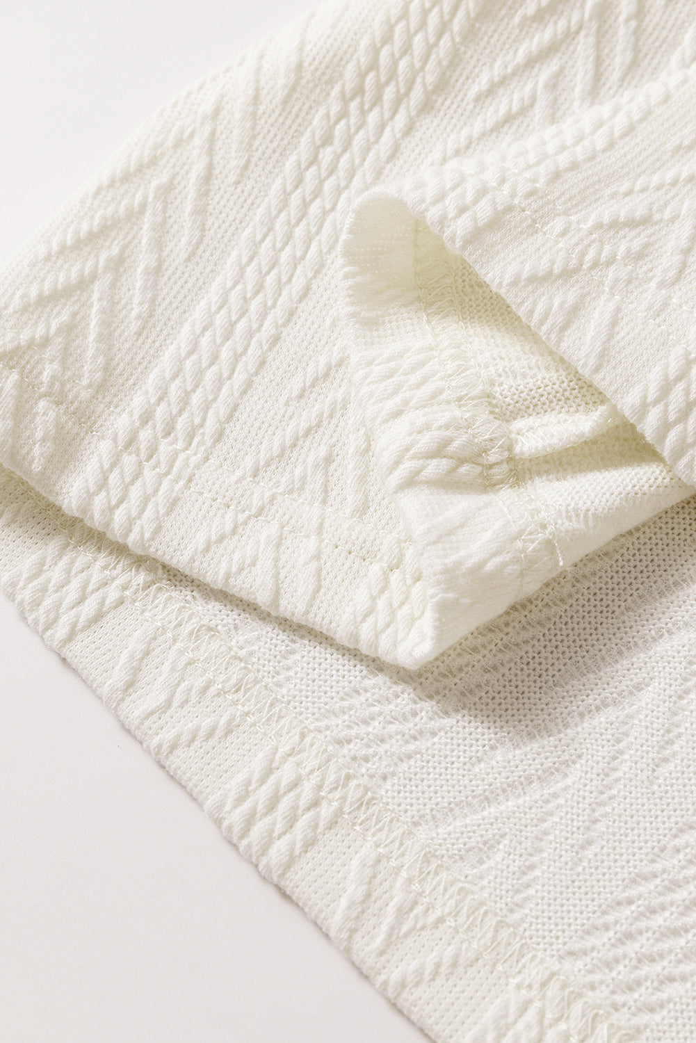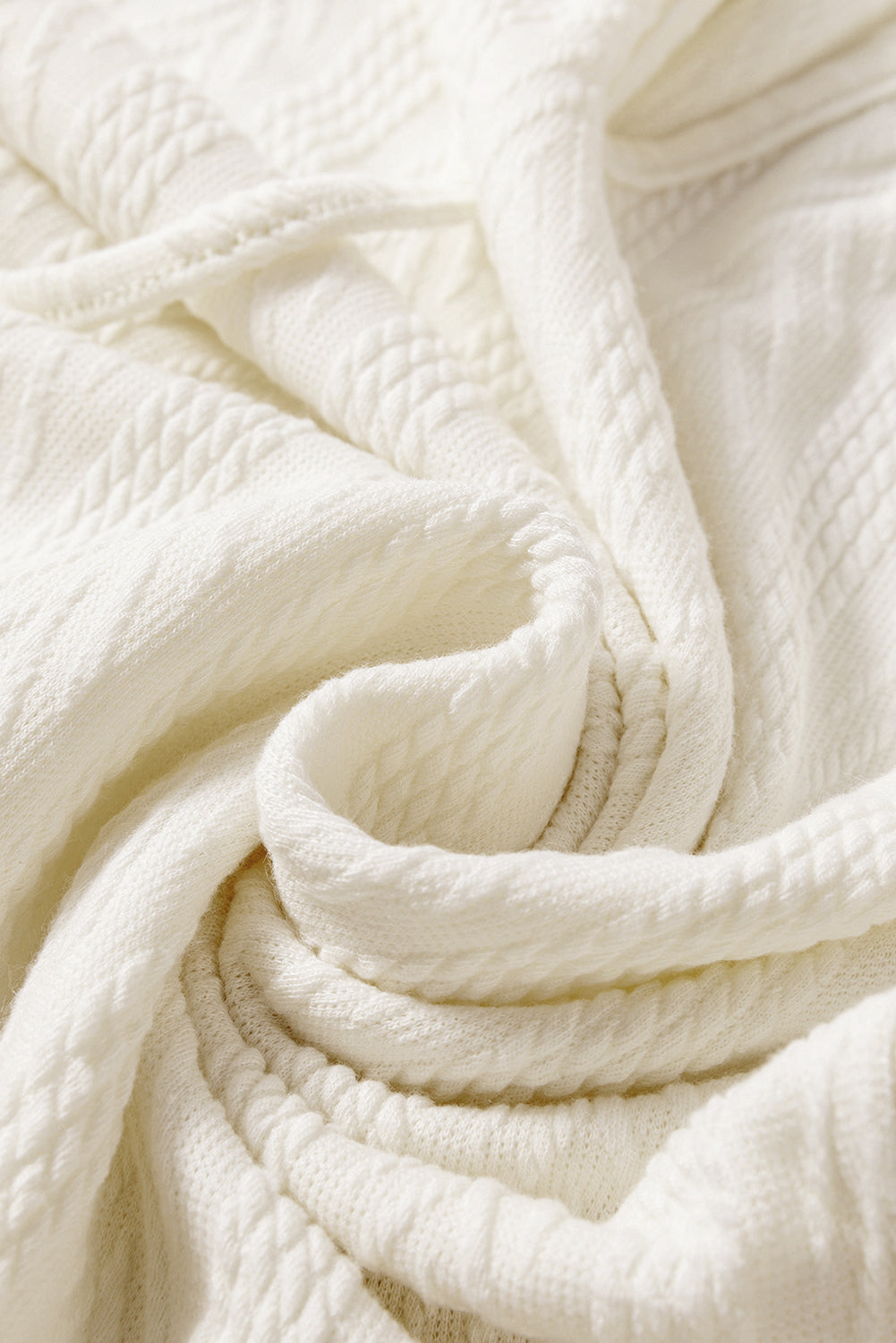 Beige Floral Patchwork Textured Knit Drawstring V Neck Blouse