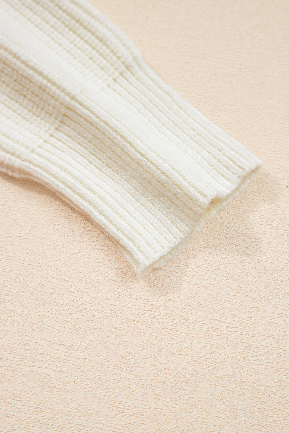 Beige Pumpkin Embroidered Ribbed Thanksgiving Halloween Holiday Sweater