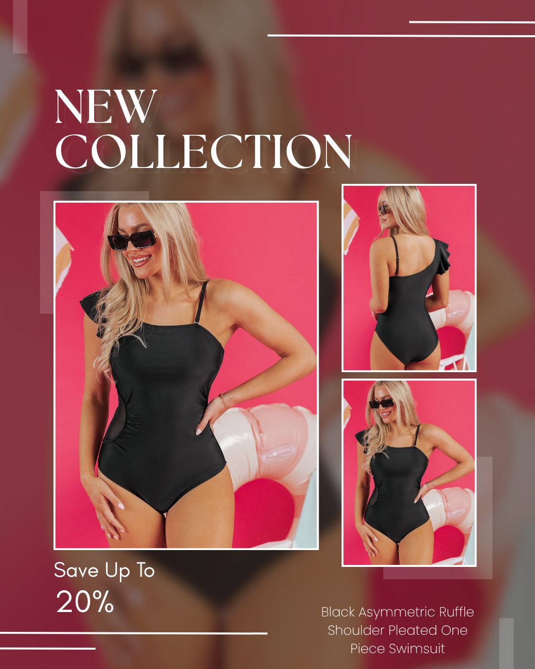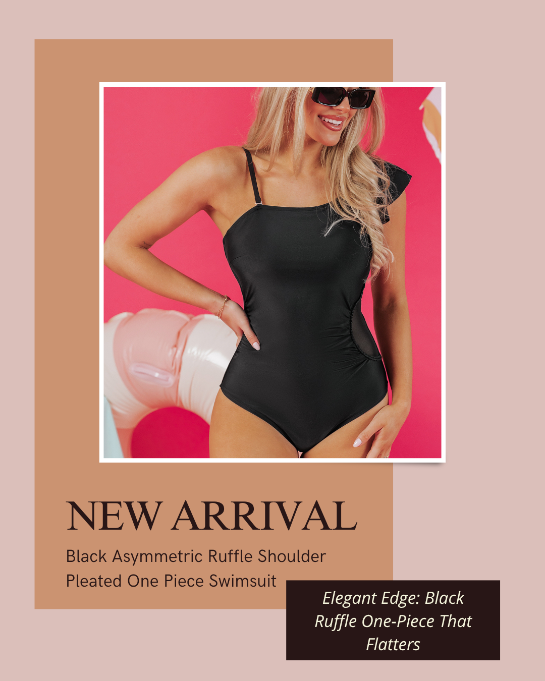 Why Choose the Black Asymmetric Ruffle Shoulder Pleated One-Piece Swimsuit?