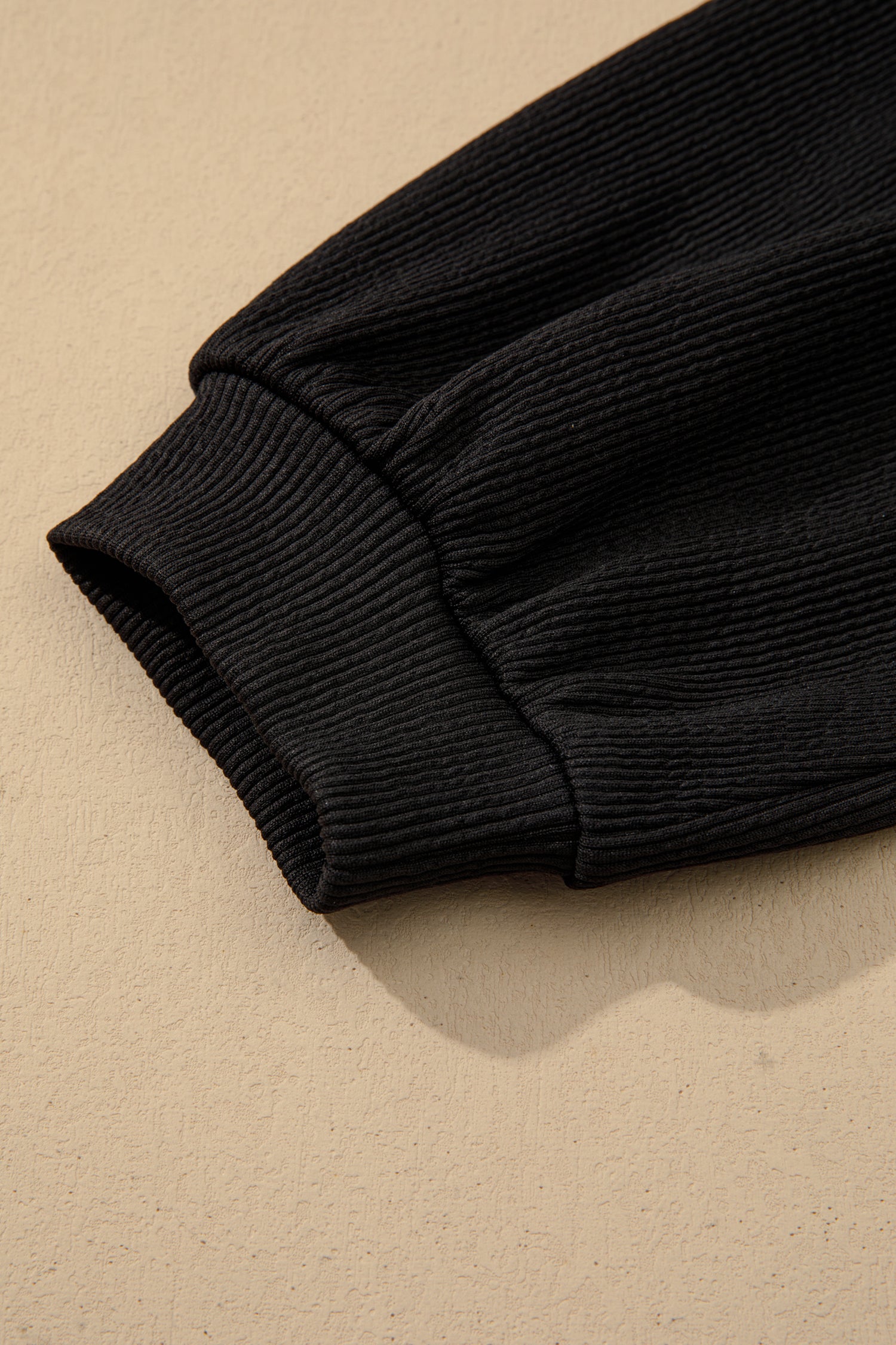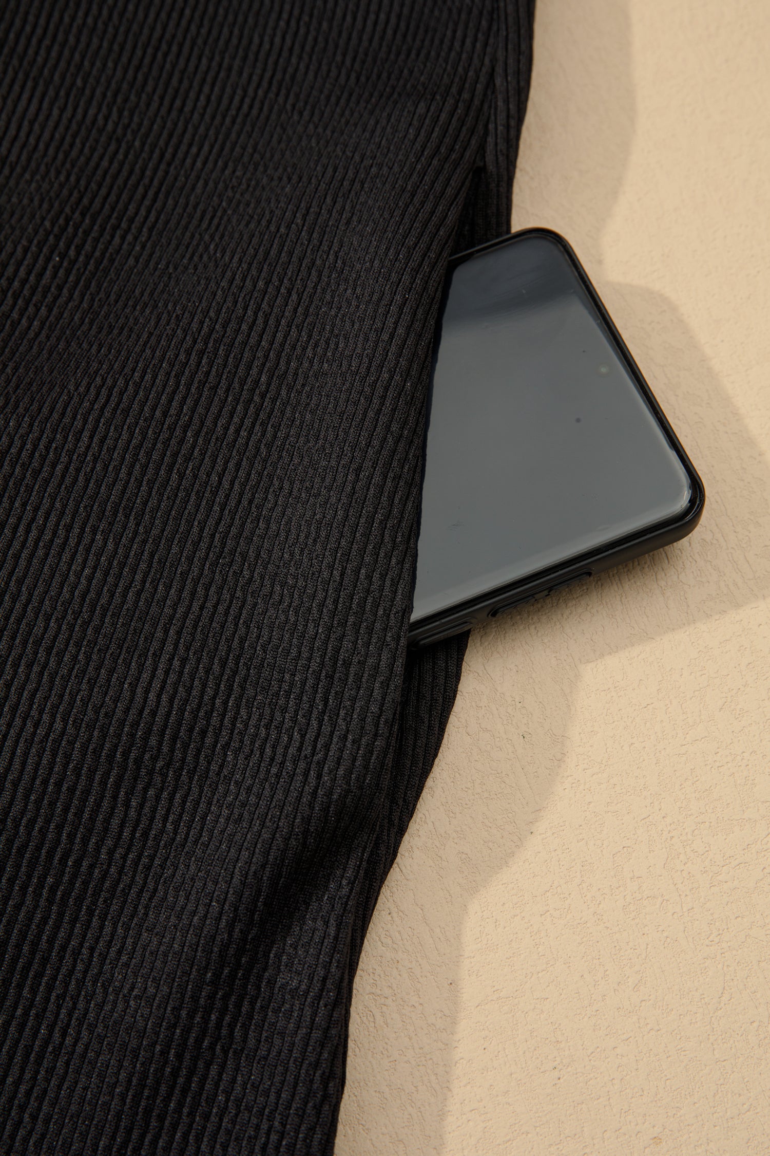The ribbed fabric is textured, breathable and stretchy.