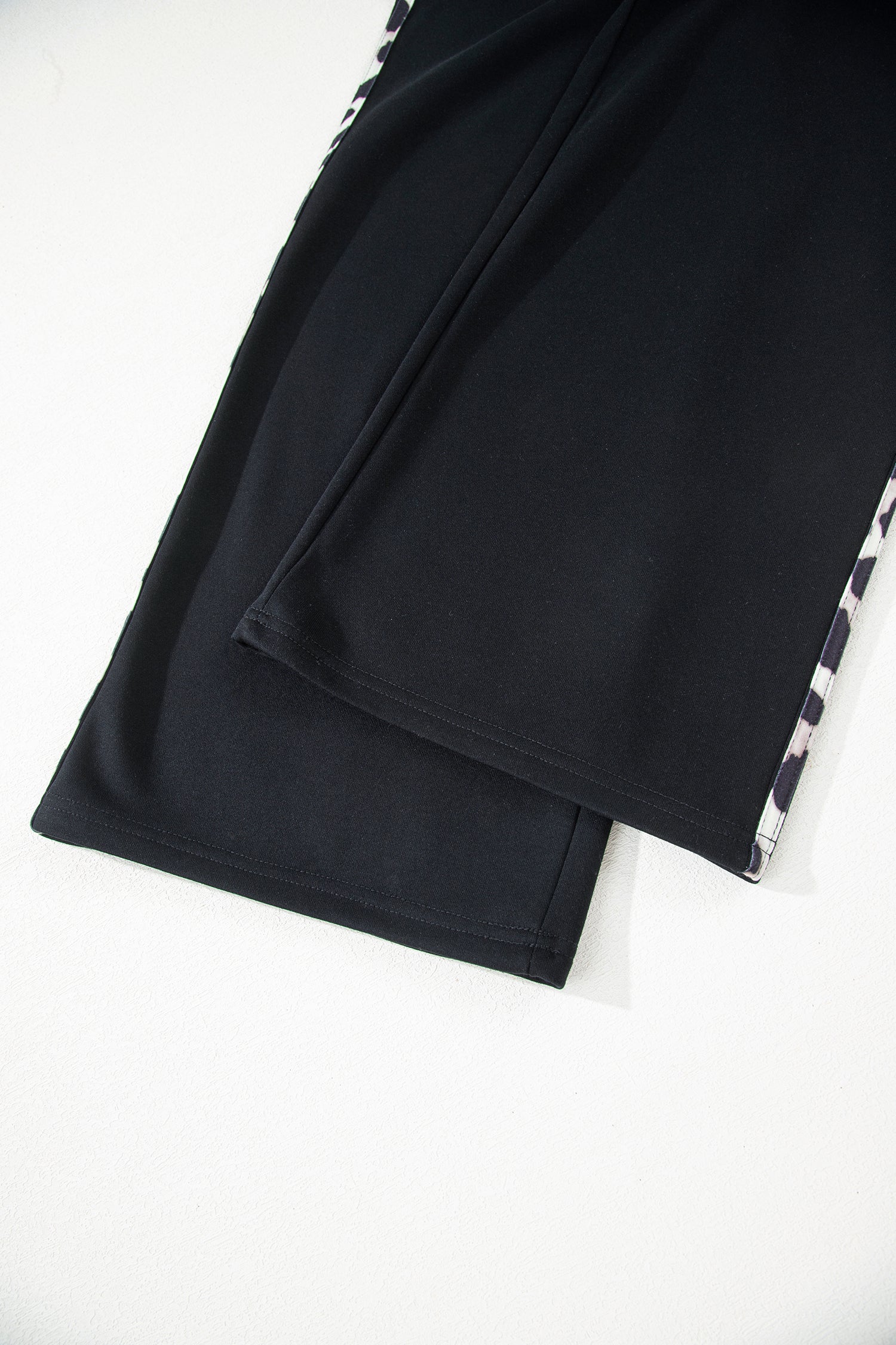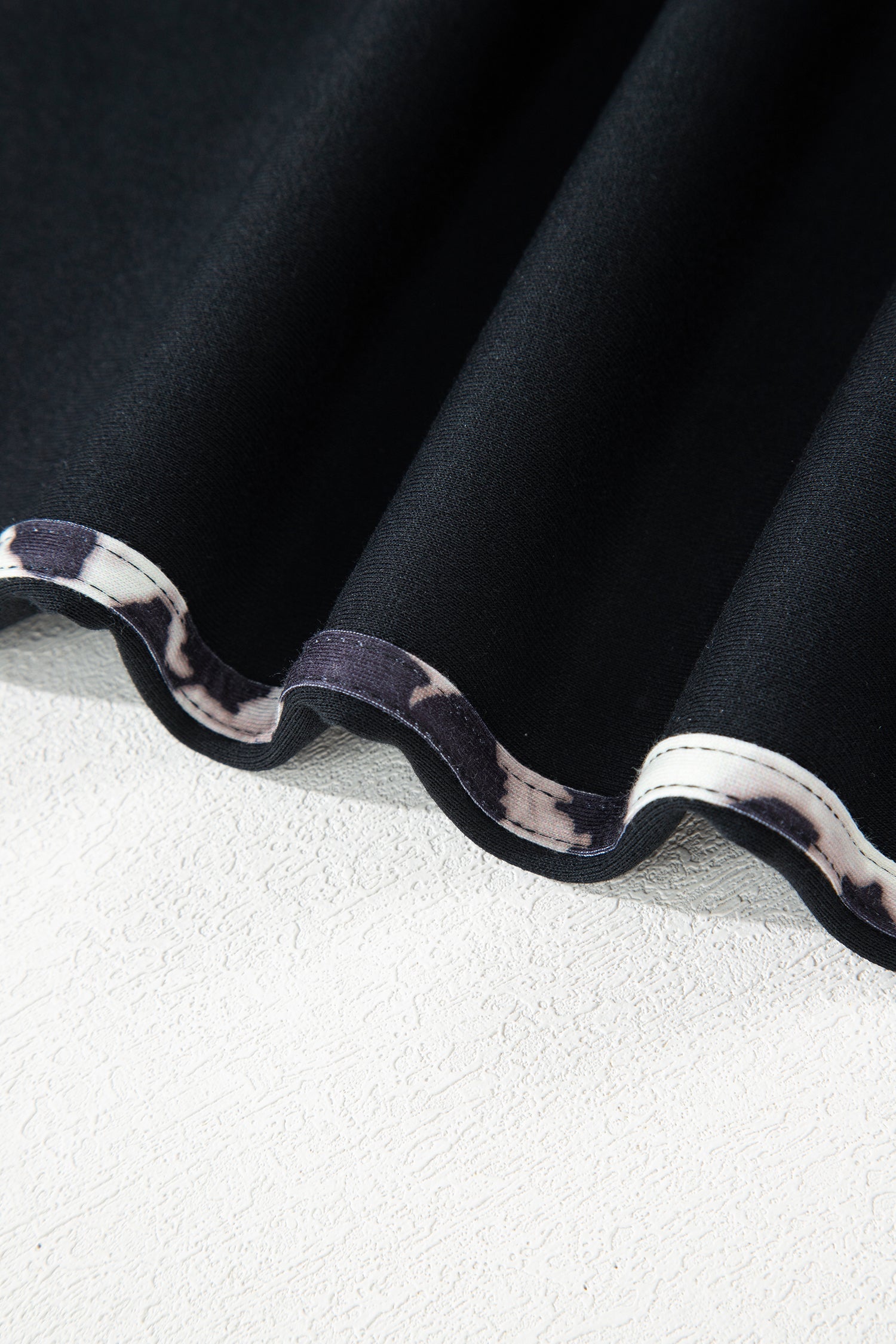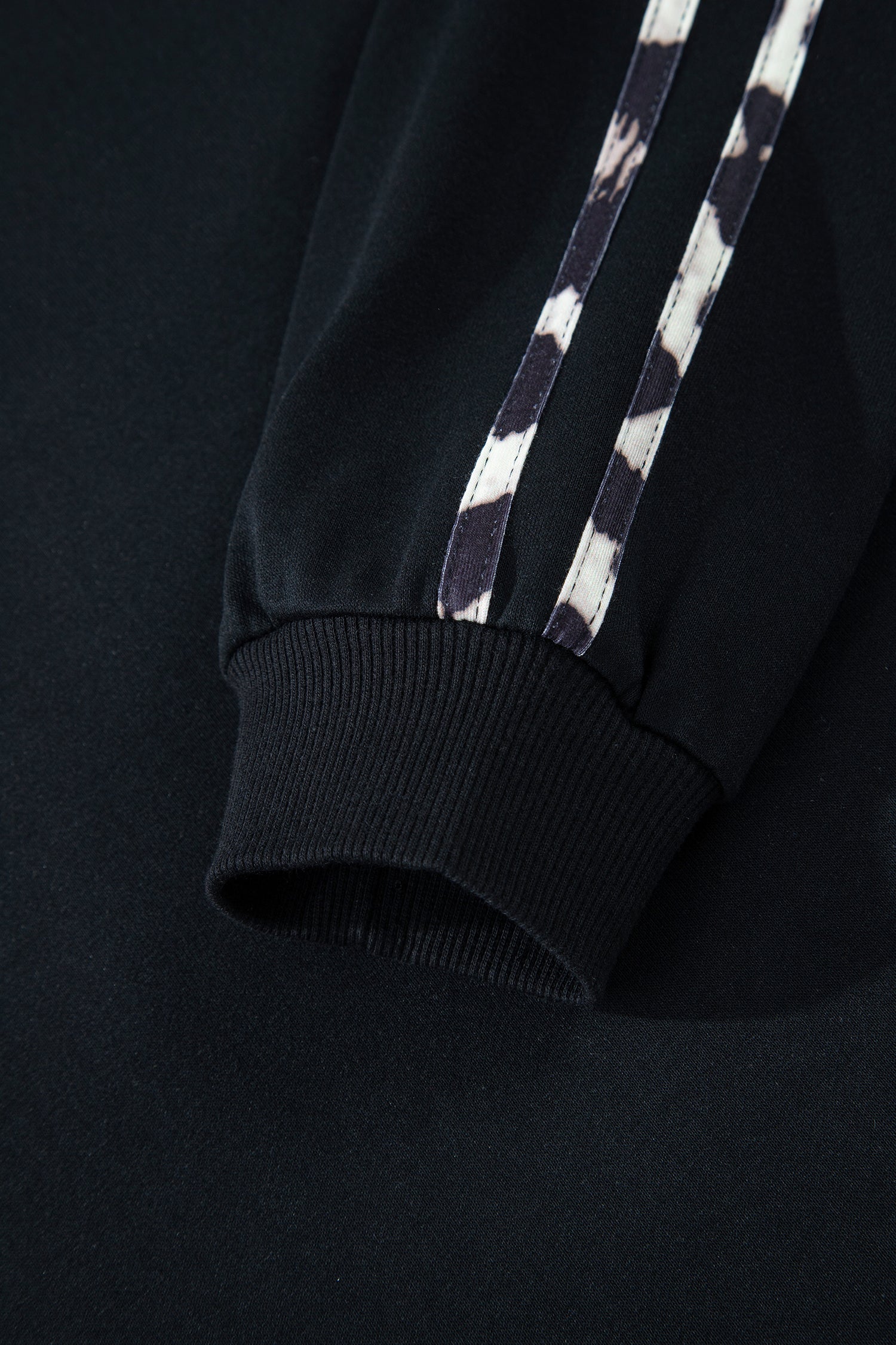 Black Contrast Leopard Trim Casual Sweatshirt Pant Set