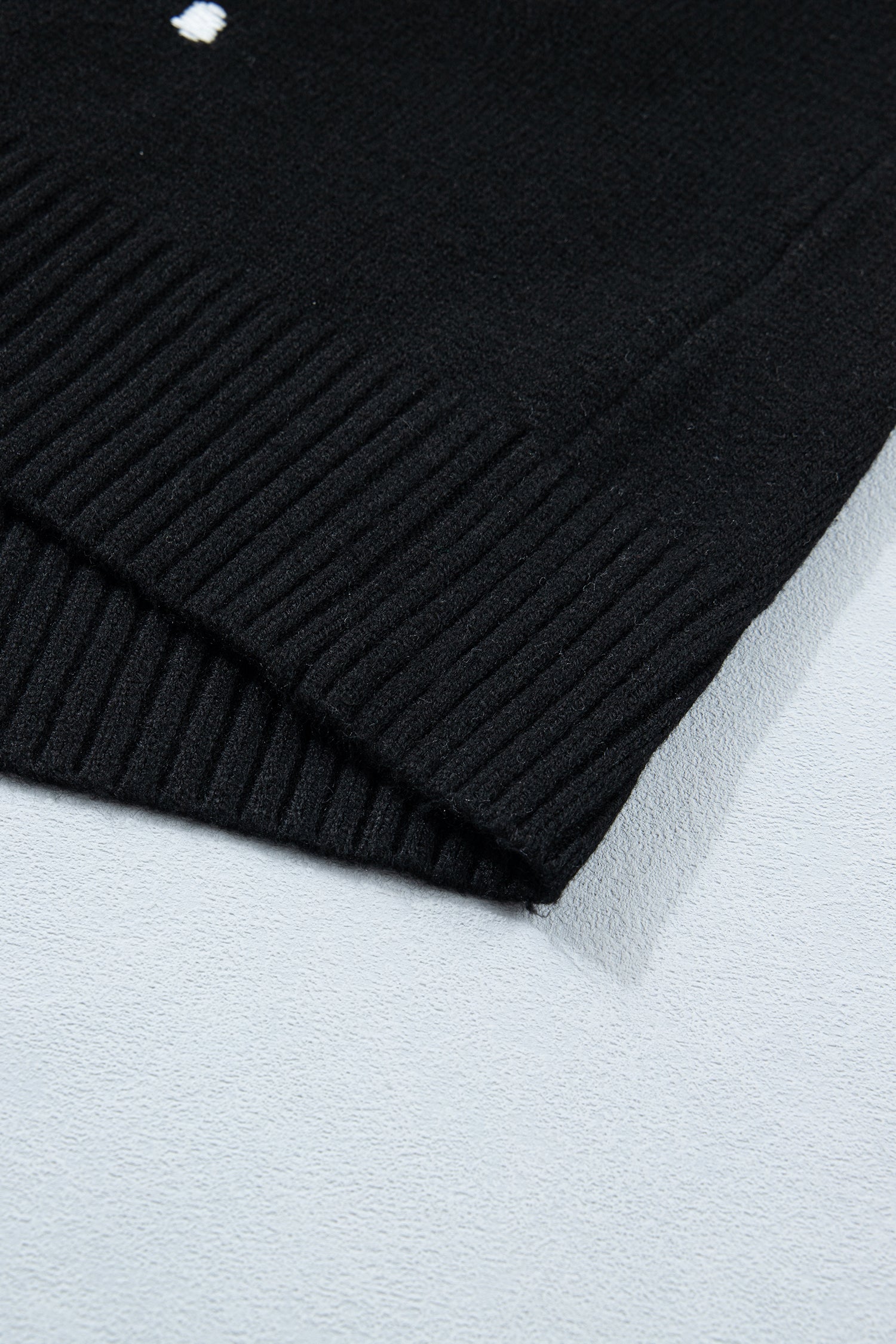 Black Elegant Polka Dot Bubble Short Sleeve Sweater